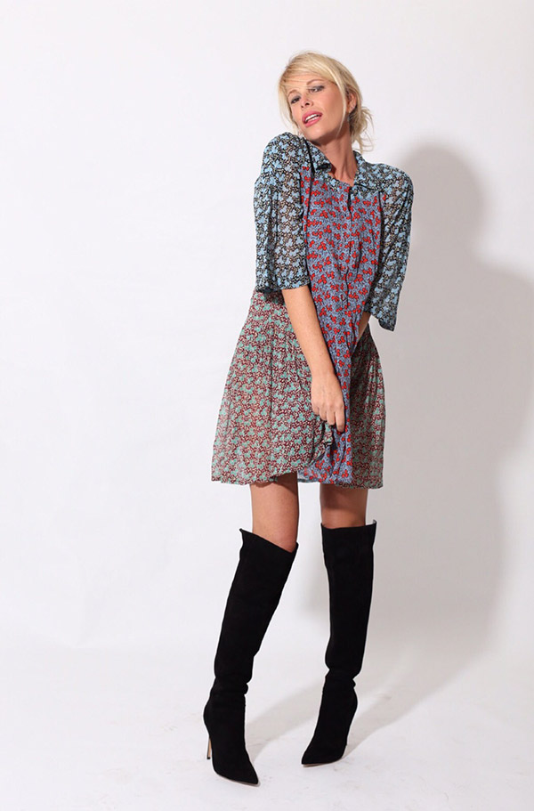 It is still too early to reveal anything about the show, so let’s move onto today’s outfit! 🙂 Perhaps we picked the wrong weekend for a light, almost springtime dress, but this has been hanging in my wardrobe since September and after getting a bit of a tan on the beach I decided it was time to show it to you! It is simple, but at the same time unusual… and actually all of the girls in the crew (including my mum), went mad for this dress by Philosophy di Lorenzo Serafini, in a simple pattern but with mix of different, gorgeous colours. To give it a winter feel I decided to wear it with these lovely boots by Gianvito Rossi, over the knee and with a super stiletto heel!